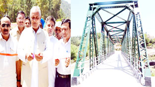 Minister for PWD, Abdul Rehman Veeri inaugurating motorable bridge at Thal Mohra on Saturday.