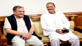 Minister for Rural Development, Abdul Haq Khan and Union Minister for Rural Development, Birender Singh during a meeting at New Delhi.