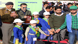 Minister for Sports, Imran Raza Ansari and DGP, K Rajendra alongwith kids during concluding function of Girls Sports Festival in Srinagar.