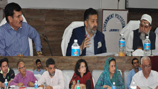 Minister for Technical Education, Imran Raza Ansari reviewing functioning of Polytechnic Colleges in a meeting at Jammu on Thursday.