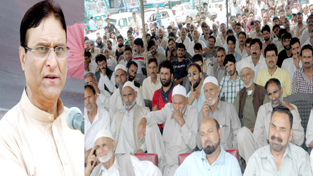 Minister for Transport Choudhary Mohammad Ramzan addressing a gathering at Handwara on Sunday.