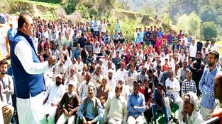 Minister for Industries and Commerce Chander Parkash Ganga addressing a public gathering on Sunday.