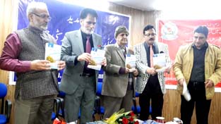 Minister of Haj and Aquaf, Farooq Andrabi along with JU VC, Prof RD Sharma and others releasing a book on Urdu writers on Wednesday.