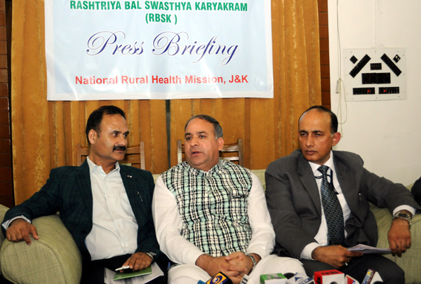 Minister of State for Health Shabir Ahmad Khan along with Director Health Services, Kashmir Saleem-ur-Rehman addressing a press conference about recent deaths of Child in Kashmir, in Srinagar on Monday. —Excelsior/Amin War