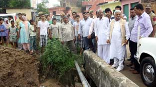 Minister for Planning, Ajay Sadhotra assessing the loss suffered by villagers in Marh block due to flood.