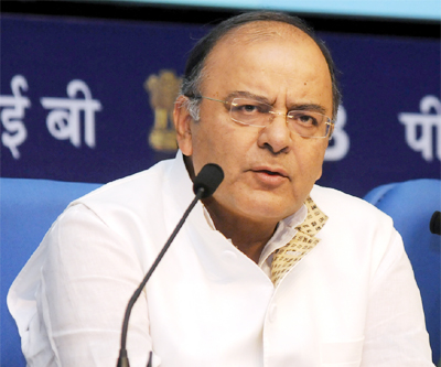 Union Minister for Finance, Corporate Affairs and Defence, Shri Arun Jaitley addressing a Press Conference, in New Delhi on Saturday. (UNI)