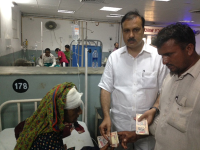 Minister of Planning Labour and Employment, Ajay Kumar Sadhotra today visited Government Medical College, Hospital Jammu and enquired about the health of those injured in the cross border firing in R S Pura. Sadhotra, while interacting with the patients assured them all necessary assistance from the Government.