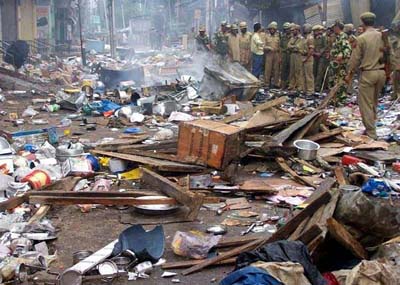 Sources said Kuleed Mohammad market, which had only minority community shops, was nearly razed to ground. Some houses, which had been constructed atop the shops, also suffered damage in the fire.