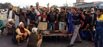 KATHUA, Jan 17: Irate people held a protest demonstration and blocked Jammu-Pathankot National Highway for two hours in between Kotta and Patta Rasna in Hiranagar tehsil of Kathua district today against the mysterious death of an eight year old tribal girl whose body was found in the nearby forests this morning.