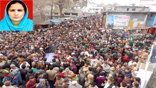 Shouting slogans and demanding stern action against the accused in-laws, the protesting people were also joined by local MLA Rafiq Khan and they blocked the Main Chowk Mendhar after putting body of the deceased on road.