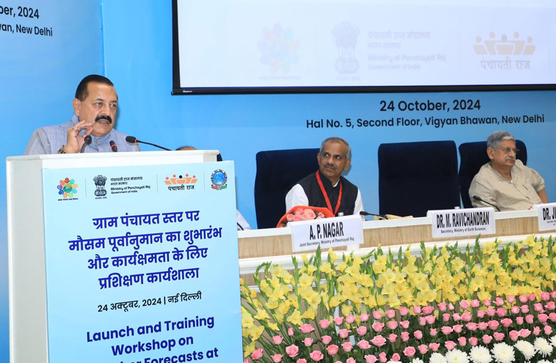 NEW DELHI, Oct 24: In a significant move to enhance agricultural productivity, Union Minister of State (Independent Charge) for Science and Technology, Minister of State (Independent Charge) for Earth Sciences, MoS PMO, Department of Atomic Energy, Department of Space, Personnel, Public Grievances and Pensions Dr. Jitendra Singh today addressed the launch and training workshop on weather forecast initiative aimed at Gram Panchayats across India.