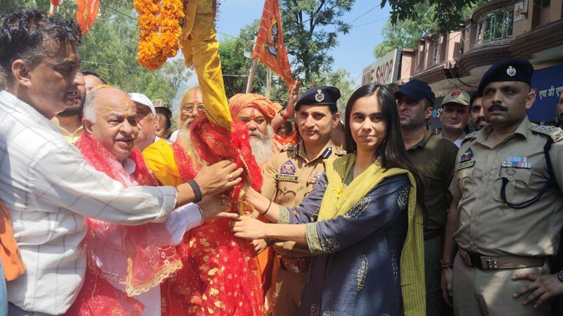REASI, Aug 7: The annual Kousar Nag Yatra was ceremoniously flagged off today from Thappa Chowk, Reasi, amid religious fervour and spiritual enthusiasm. Member Legislative Assembly Reasi Kuldeep Raj Dubey and Deputy Commissioner Reasi Nidhi Malik jointly inaugurated the yatra in the presence of senior officials and devotees.