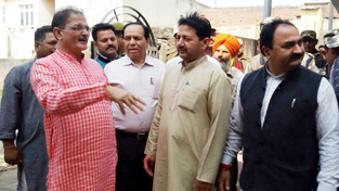 MLA Gandhi Nagar, Kavinder Gupta interacting with people at Shanti Nagar on Tuesday.