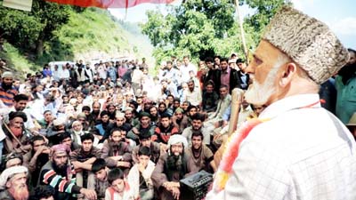 MLA Inderwal GM Saroori addressing public rally at Thakraie in Kishtwar.