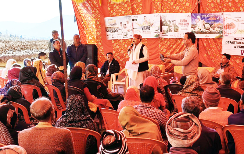 UDHAMPUR, Nov 28: MLA of Chenani Assembly Constituency, Balwant Singh Mankotia addressed a public darbar during special awareness camp for farmers and a free eye check-up camp by Rotary Hospital at Gauri Kund (Katwalta).