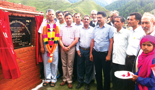 KATHUA, May 17: Jeevan Lal, MLA Bani accompanied by Dr. Bharat Bhushan, Chief Executive Officer, Lakhanpur Sarthal Development Authority, Executive Engineer, Lakhanpur Sarthal Development Authority, Tehsildar Bani & other officials today visited beautiful Sarthal Valley and laid the foundation stone of a tourist hut at Sarthal meadow which has captivity beauty.