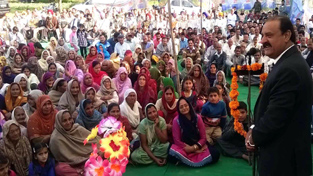 MLA Surjit Singh  Slathia addressing public gathering at Vijaypur on Tuesday.
