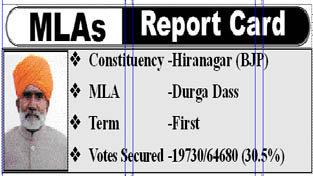 People in this Constituency have a grudge against the successive representatives who failed to come up to their expectations and develop it a model Assembly segment despite many Central sponsored schemes were implemented for the development of border areas but result on ground are negligent. Except Late Girdhari Lal Dogra a strong Congressman and ex-Finance Minister no other public representative after him could give justice to the people of the area was the general view of the masses. They said that no public representative could beat his track record and win the confidence of the people as he.