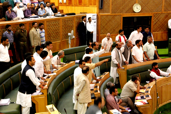 MLAs protesting in the Assembly on their role on Tuesday. -Excelsior/Shakeel