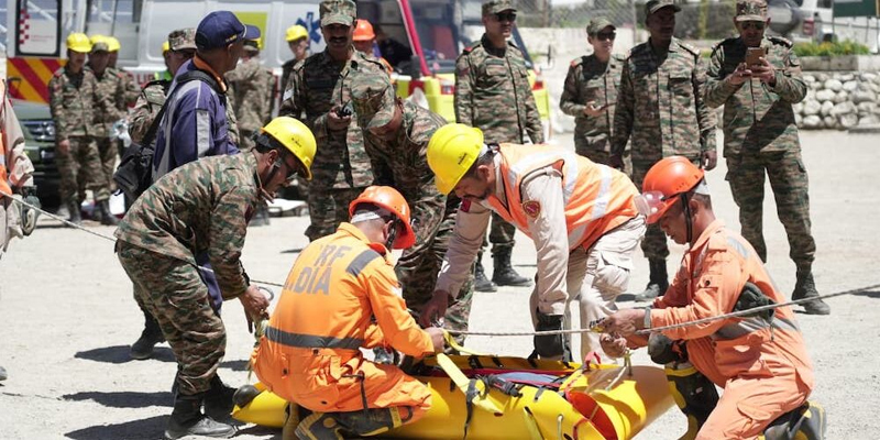 KARGIL, Aug 21: A UT-level mock disaster management exercise focussing on earthquake, glacial lake outburst flood (GLOF), and cloudburst scenarios was successfully conducted in Kargil on Thursday. This was the fourth consecutive year that the Union Territory of Ladakh, in collaboration with the National Disaster Management Authority (NDMA), Union Ministry of Home Affairs, organized the drill.