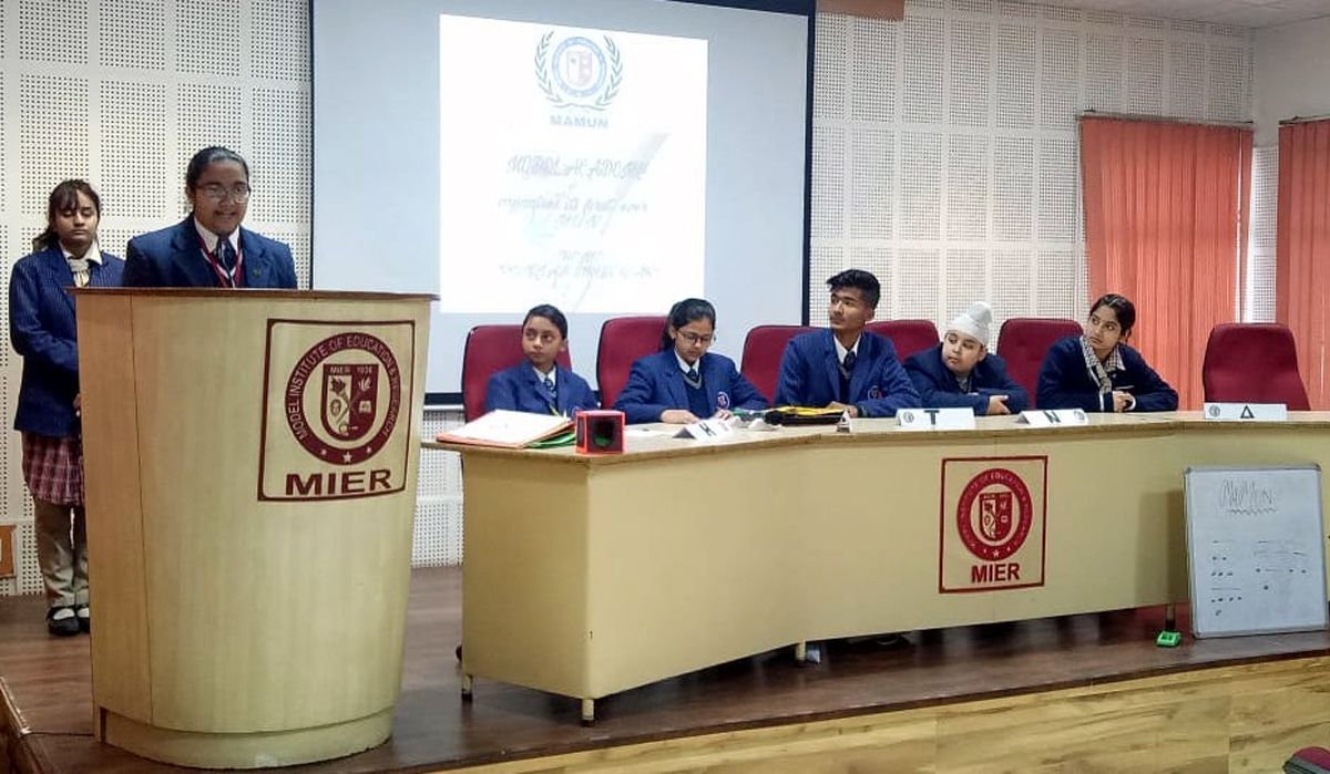 Jammu, Dec 27: Model Academy the prestigious school of MIER, successfully organised its first ever MUN from 26th to 27th December, 2019 on the theme ‘Punjab Drug War’. The event was graced by Dr. Adit Gupta, Director, MIER and Rupa Gupta, Joint Director, MIER as the chief guest and the Guest of Honor respectively. Pramod Kumar Srivastava, Principal, J.K.Dhiman, Vice-Principal, Ruchi Sharma, QAO and Manju Vali, Convener were also present on the occasion.