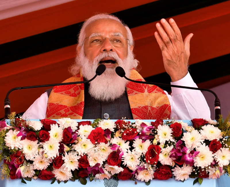 Prime Minister, Narendra Modi addressing at the foundation stone laying ceremony of several infrastructure projects, in Assam on Sunday.