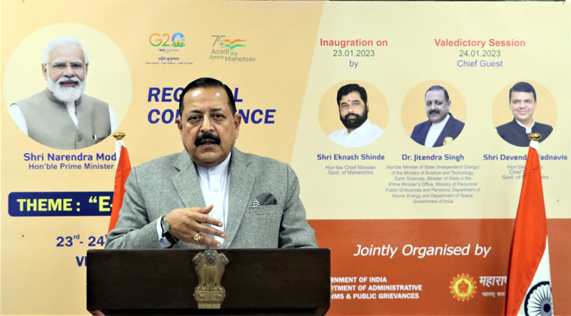 Addressing the Valedictory Session of the 2-Day Regional Conference at Mumbai through video conferencing, Dr. Jitendra Singh said that PM Modi has given the mantra of ‘Minimum Government, Maximum Governance’ to create such a system where administration and good governance are run without unnecessary interference. He also released an e-journal on maximum governance, minimum government and also inaugurated a coffee table book on Good Governance Week – 2022.