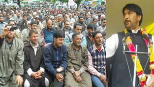 Addressing party leaders and workers at one day political convention of district Anantnag today Mir expressed concern over the political instability in Jammu and Kashmir arising due to anti- people policies of the Coalition Govt. He said from the day one PDP- BJP coalition came into existence, it appeared that J&K has lost its identity with the continuous controversial statements by BJP leaders regarding the Jammu and Kashmir State. It disturbed the socio political scenario of the State, the credit for this goes to PDP only.
