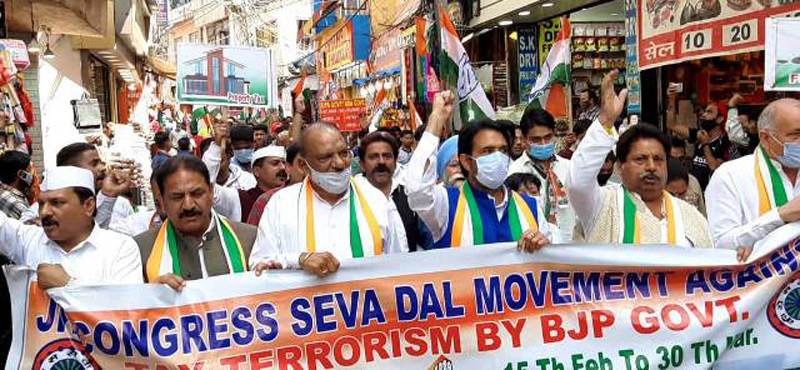 Mir was accompanied by PCC vice presidents and former ministers Mula Ram and Raman Bhalla; general secretaries Balwan Singh, Manmohan Singh; Co-treasurer Rajnish Sharma; DCC president Jammu Rural Hari Singh Chib; PYC president Uday Bhanu Chib; NSUI State president Sunny Parihar. The protest rally was organised by Sewa Dal State president Rajesh Sadhotra. Click here to watch video