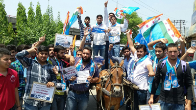 Others present in the protest were Raqeeq Khan and Amjad Bhat, vice presidents, NSUI, Ajay Kumar, National delegate, NSUI, Sunny Parihar, district president, Jammu, NSUI and Sahil Singh Langeh, Nishant Gupta and Ranjodh Singh, State secretaries.