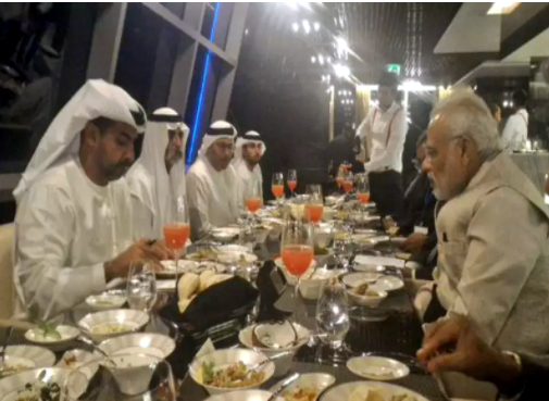 The France and UAE sojourn were also strictly vegetarian. The details of menu at the French state dinner hosted at Louvre Museum in Paris were not out in the public, except that the thread used to tie it was the Indian tricolour, not the colours of the French national flag. The UAE dinner was a tameraffair, and a strictly vegetarian one. It was statedon the menu that no meat or egg substance was used to prepare the food, and the oils used were all plant derived.
