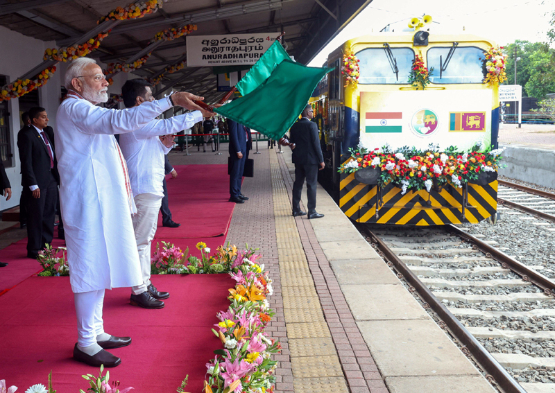 COLOMBO, Apr 6: Prime Minister Narendra Modi on Sunday travelled to the historic city of Anuradhapura in North-Central Sri Lanka and launched two India-assisted railway projects before wrapping up his three-day trip to the island nation.