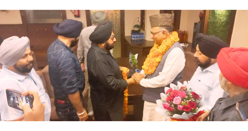 Sikh community members felicitating MP Rajya Sabha Er Gulam Ali Khatana.