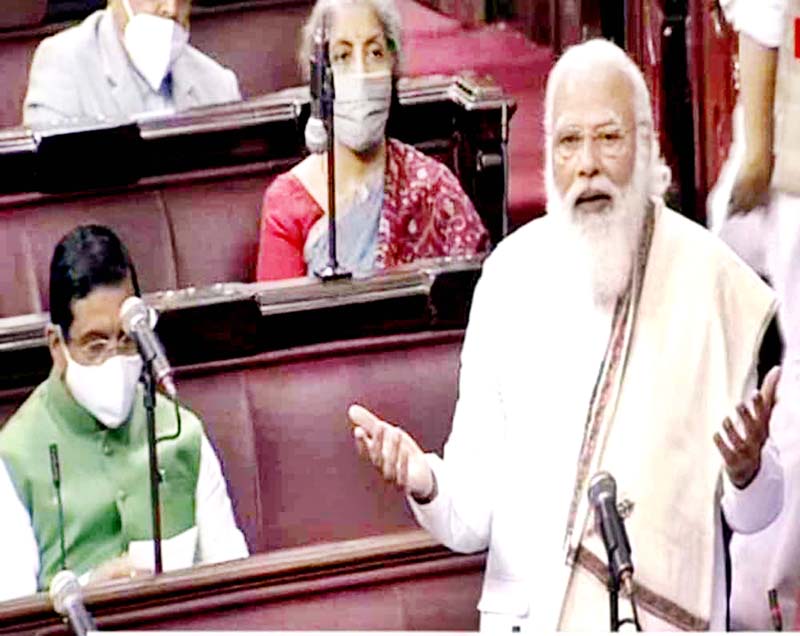 The Prime Minister’s reply lasted for over an hour, after a 15-hour discussion dominated by the farmers’ agitation and the farm laws. (PTI)