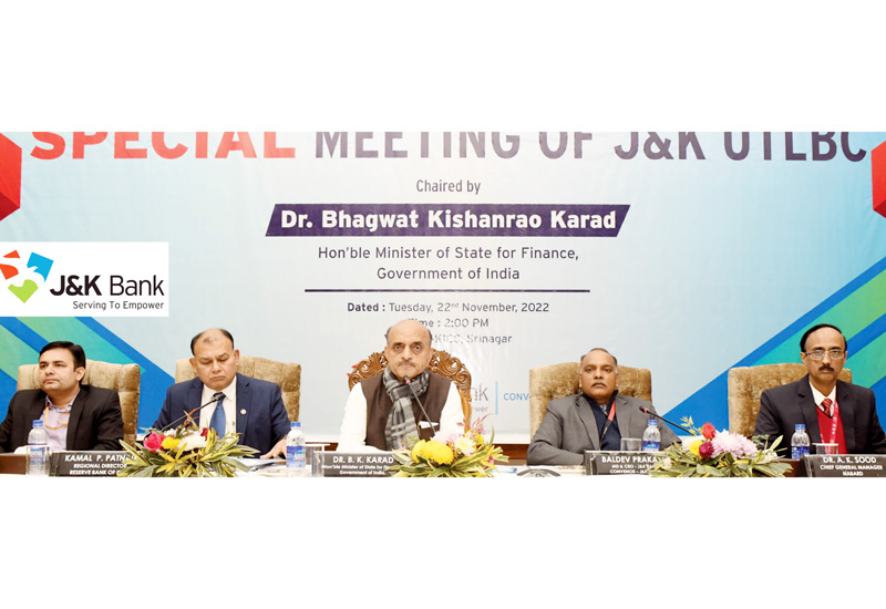 SRINAGAR, Nov 22: Dr. Bhagwat Kishanrao Karad, Minister of State for Finance chaired the special meeting of Union Territory Level Bankers’ Committee in Srinagar to review achievements of banks and financial institutions operating in Jammu and Kashmir under various initiatives of the Centre and UT Government.