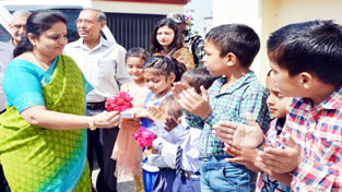 MoS for Education, Priya Sethi interacting with students of  of Bal Bharti Public School at Jammu.