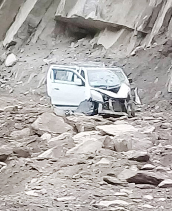 The ill-fated vehicle bearing registration number JK17-1896 carrying four members of a family was on its way to Jammu from Kishtwar when a boulder hit their vehicle at Kuligarh area of the district at around 6:30 am today, resulting into on the spot death of mother and her daughter.