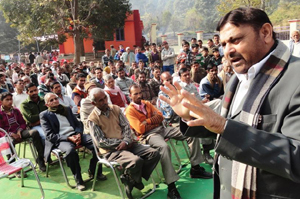 MP Madan Lal addressing public meeting in Khour on Tuesday.