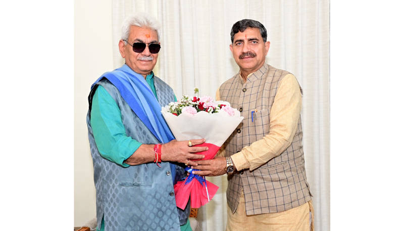 Jammu, Apr 19: Jugal Kishore Sharma, Member of Parliament, called on the Lieutenant Governor Manoj Sinha at Raj Bhavan, today.