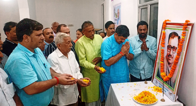 MP, Jugal Kishore Sharma and other BJP leaders paying tribute to former Jana Sangh President, Deen Dayal Upadhayay at Talab Tillo on Sunday.