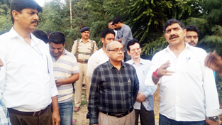 MP Jugal Kishore Sharma during his visit to Khanpur              village in Nagrota constituency on Sunday.