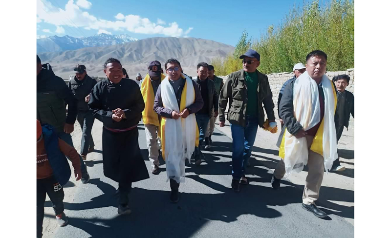 During his visit, MP Ladakh laid the foundation stone for the PMGSY Road from L034 to Taru Farka and T01 to Taru and also laid the foundation for an open gym at Phyang and inaugrated chain link fence to protect the Village Spring Water at Takey, Phyang.