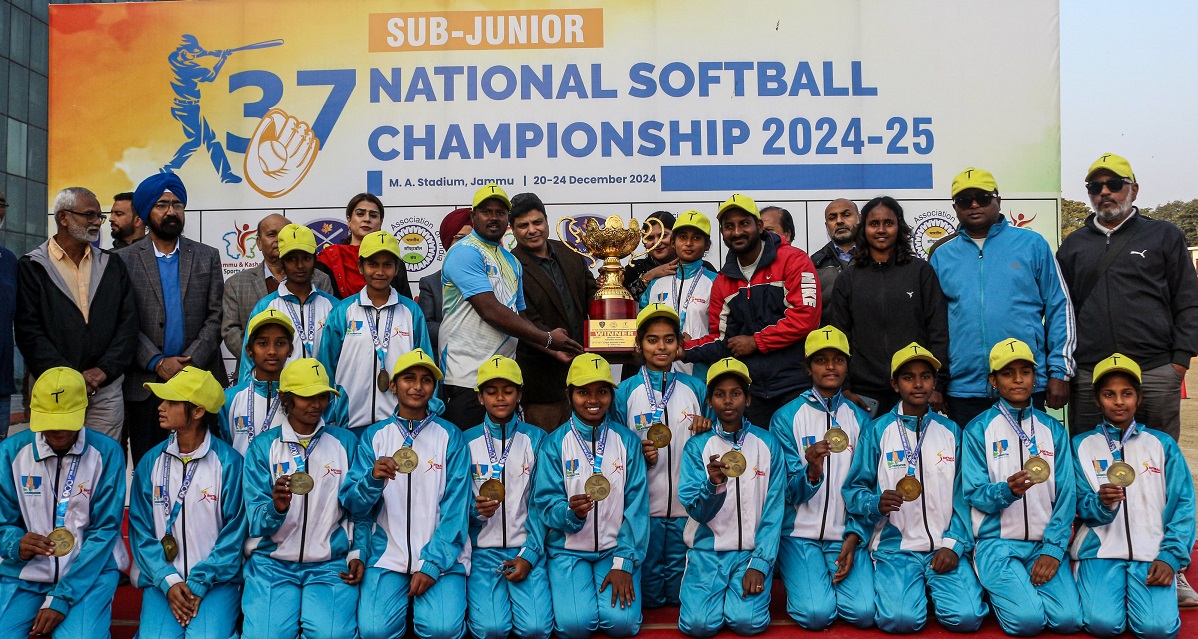 Earlier, getting the better of their rivals in their respective summit clashes, the formidable teams of Madhya Pradesh and Telangana lifted the title trophies, thus winning Gold medals while Jammu and Kashmir won Silver medal in boys and Bronze medal in girls in the 37th Sub Junior National Softball Championship, organised by Softball Association of Jammu and Kashmir, under the auspices of Softball Association of India and J&K Sports Council.