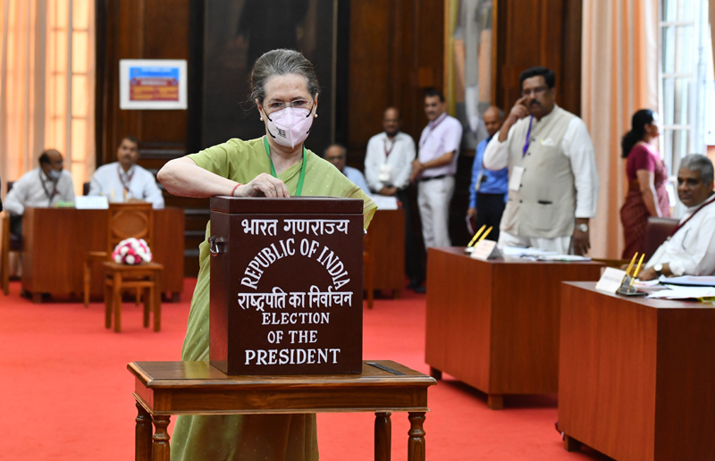 While MPs filed into Parliament’s Room No 63 that had been converted into a polling station to cast their vote, MLAs headed to state assemblies. A total of 4,809 electors, including 776 MPs and 4033 elected MLAs are entitled to vote in the election, but nominated MPs and MLAs, and Members of Legislative Council are not.