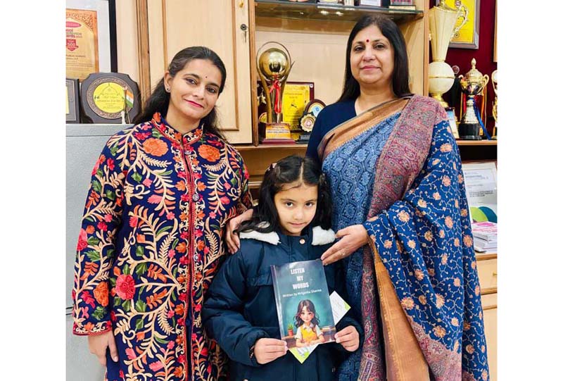 JAMMU, Jan 29: In a remarkable achievement, 6-year-old Mriganka Sharma, a student of Class I-H at Delhi Public School Jammu, has been recognized as the youngest author at the National Young Authors’ Fair (NYAF) 2024. Organized by Bri Books in collaboration with Education World, the fair saw over 200 student authors, with Mriganka standing out for her debut book “Listen My Words.”