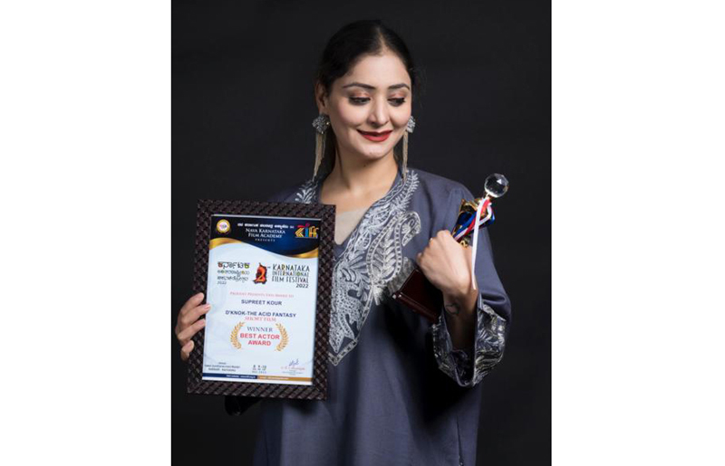At Karnataka International Film Festival, Hubbali, Supreet bagged the prestigious ‘Best Actress’ Award for the movie ‘D’Knok’ shot in Jammu and produced and directed in Jammu.