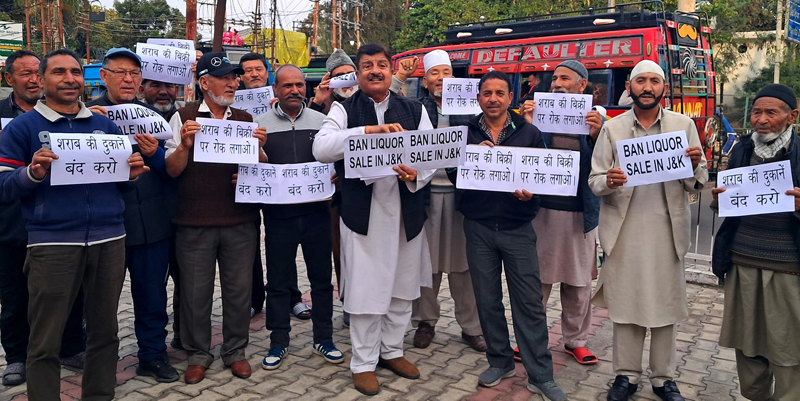 JAMMU, Jan 25: Activists of Mission Statehood Jammu Kashmir (MSJK) here today organised a protest rally under the leadership of Sunil Dimple demanding passing of a bill in the upcoming budget session of J&K Legislative Assembly to ban the sale of liquor in J&K.