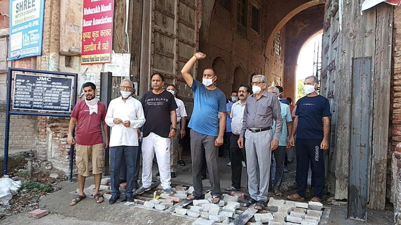 Mubarak Mandi residents staging protest on Sunday.