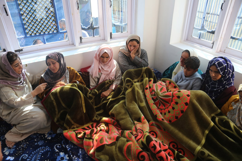 Mehbooba Mufti visiting the slain cop's residence at Tangmarg area of Baramulla. -Excelsior/Aabid Nabi