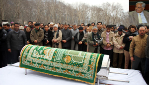 After the funeral prayers, he was given full state honours, a 21-gun salute, as a police band played the ceremonial Last Post for the deceased Chief Minister. The coffin, in a decked up police vehicle, was later taken in the form of a procession of vehicles to the ancestral town of Bijbehara where thousands of workers and relatives were already waiting for funeral prayers of the Chief Minister.